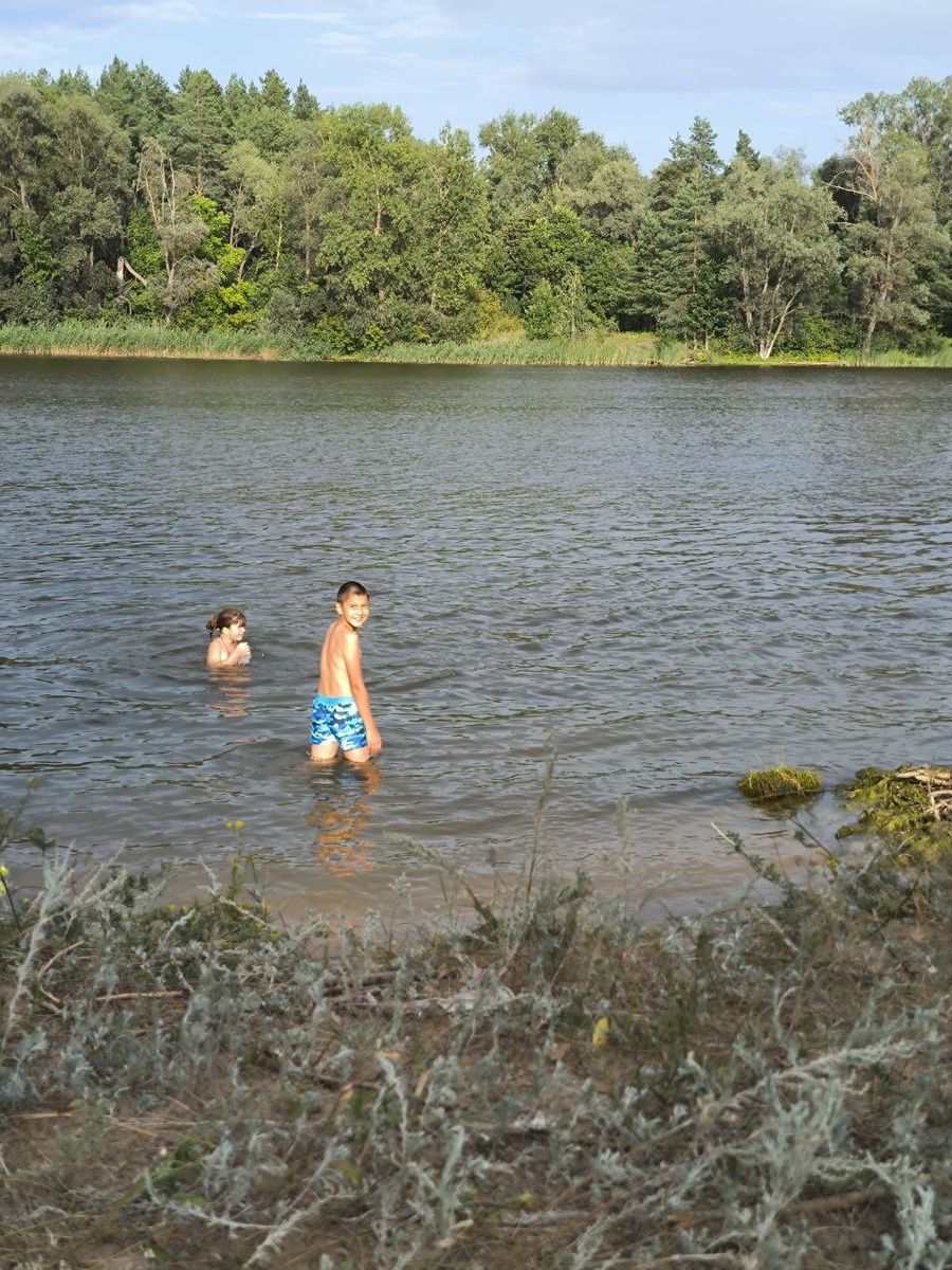 А мы с Дэнизом на даче! Поработали и пошли купаться!