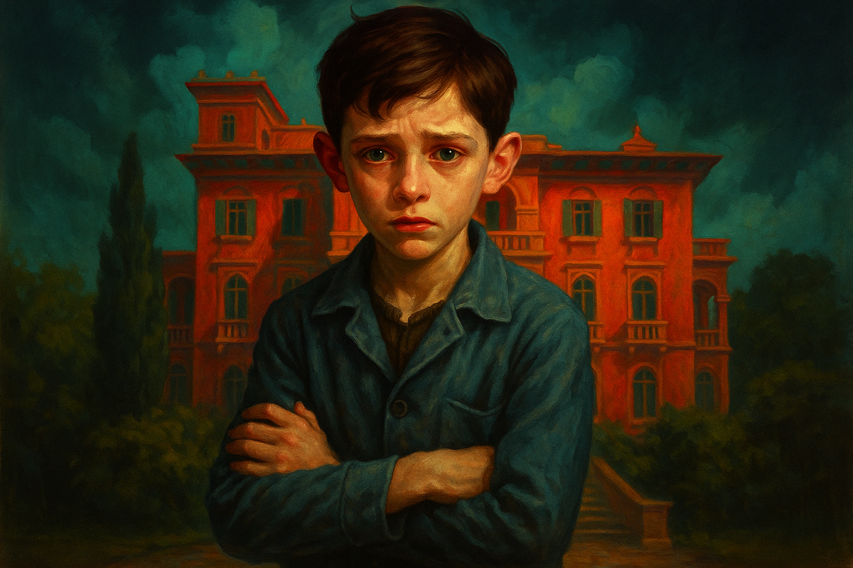 В тот день город был мокрым и серым. Низкое небо, будто натянутое простынёй, нависло над улицами. В лужах отражались угрюмые фасады домов, редкие машины с брызгами проносились мимо. На остановке, в промокшей до нитки куртке, стоял мальчик лет одиннадцати. Лицо его было худым, глаза — настороженными и одновременно уставшими, как у человека, повидавшего слишком много.