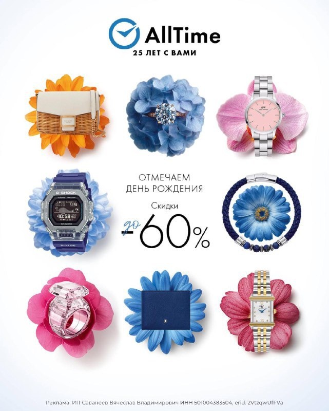 Часовый бренд AllTime отмечает четверть века успешной работы. По случаю юбилея компания объявила о старте грандиозной распродажи. В ассортименте представлены часы, украшения и аксессуары популярных моделей со скидкой до 60%. Торжества проходят по адресу: город Воронеж, проспект Революции, дом 53. Акция ограничена во времени и завершится 10 августа текущего года. Не упустите шанс присоединиться к праздничным мероприятиям и приобрести стильные товары по сниженным ценам.