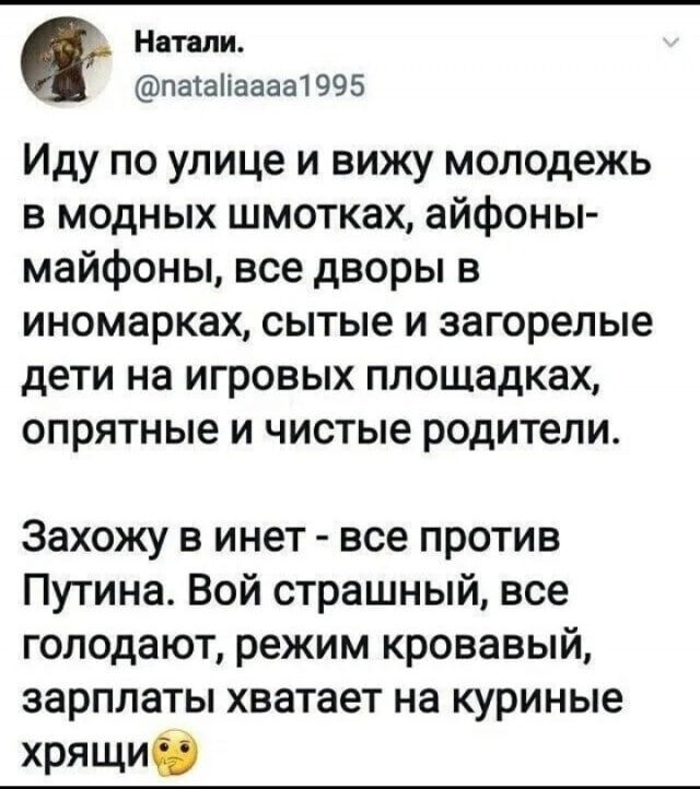 Дак давно известно, что у нас два народа. Один для интернета, а другой для жизни