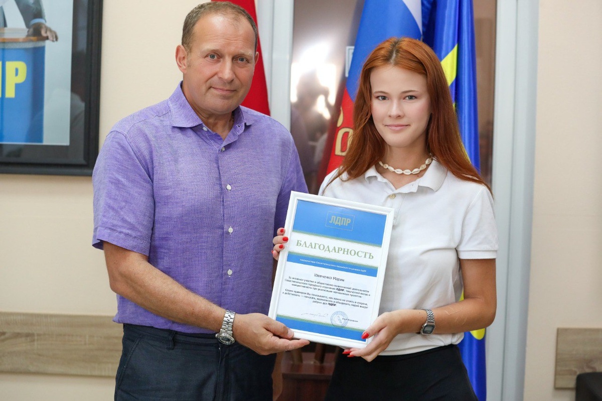 Активная молодежь ЛДПР удостоена Благодарственных писем