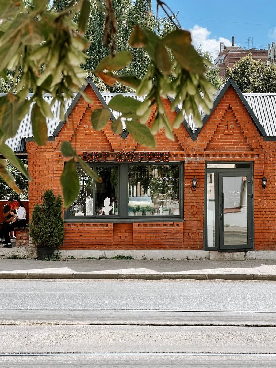 Уютная кофейня на трамвайной остановке.