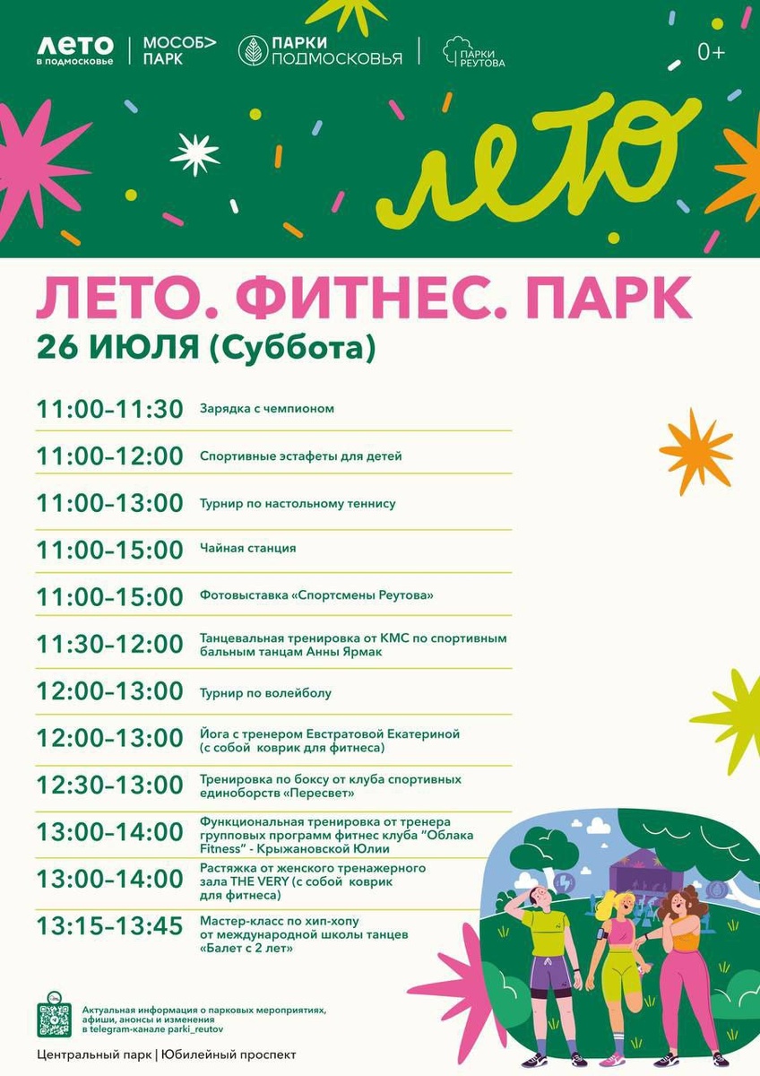 🏋️♂️ ЛЕТО. ФИТНЕС. ПАРК! 🏃♀️ Ждём всех 26 июля в 11:00 в Центральном парке на спортивном мероприятии! В программе: 🌸Бесплатные тренировки на свежем воздухе 🌸Йога, функциональные и танцевальные тренировки 🌸Мастер-классы от топовых тренеров Приходите сами, зовите друзей – будем двигаться, заряжаться и отдыхать вместе! 🎙️Парки Реутова 🤩 Подписаться | Прислать новость | ВКонтакте | Дзен | Чат