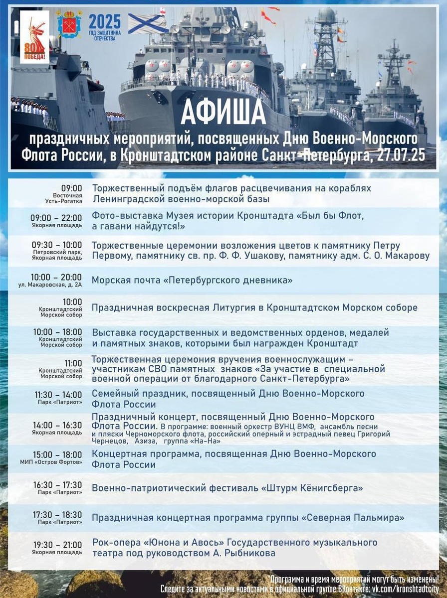 🚢 Кронштадт ярко отпразднует День ВМФ 27 июля