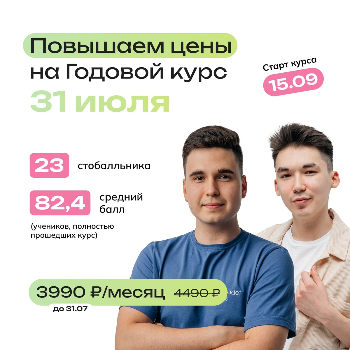 Повышаем цены на Годовой курс 31 июля 🛍 Время идёт, лето проходит... и до старта Годового остаётся всё меньше! Ребята, не откладывайте запись до сентября — проще забронить себе место сейчас, тем более это выгодно 💙 Объясняю, как работают наши повышения: Если ты запишешься на Годовой сегодня, то каждый месяц будет стоить 3990₽ — цена сохраняется. Соответственно, после повышения каждый месяц станет дороже. Ты экономишь не 1 раз, ты экономишь 8,5 раз — ровно столько месяцев идёт наш курс ✨ Вебинары, видеоуроки, домашки, пробники, общение с методистом, конспекты, УП... В цену включено всё, чтобы подготовиться на 90+ 🫶 Приходите на Годовой, котятки! Давайте вместе снижать градус стресса перед ЕГЭ: Все подробности тут, а здесь можно записаться на наши курсы