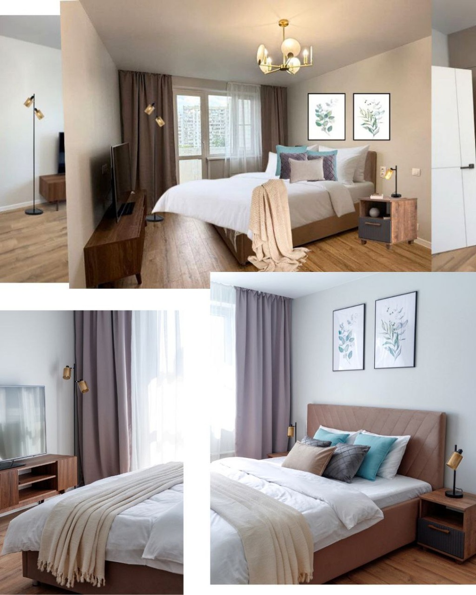 Что у нас было: фотографии квартиры от хозяев (их вы видели в предыдущих постах). Мы использовали эти фото для создания коллажей для спальни, кухни и прихожей.