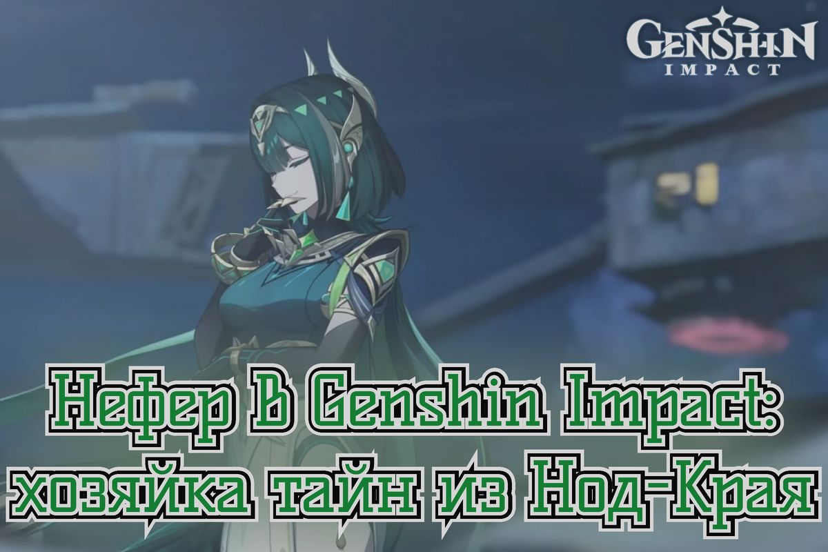 🔮 Новая героиня на горизонте — но кто она? Вы уже видели ту самую таинственную рассказчицу из трейлера 6.0? Её зовут Нефер, и она уже сейчас интригует весь комьюнити Genshin Impact. Загадочная дама из Сумеру, появившаяся на севере Тейвата, в ледяном Нод-Крае, уверенно занимает место среди самых ожидаемых героев будущих обновлений. Что скрывает её имя? Какую роль она сыграет в истории? И правда ли, что она может стать новой хозяйкой "Куратории Тайн"? Нефер — уроженка Сумеру, обосновавшаяся в Нашгороде. В трейлере она исполняет роль рассказчицы, делясь с Варкой мифами о лунах и истории мира. По предположениям игроков, она может быть главой Куратории Тайн — тайной организации, действующей в регионе Нод-Край. Имя героини отсылает к египетскому иероглифу nefer, означающему «красивый», «совершенный» — и, судя по внешности и манере речи, ей это более чем подходит. Нефер — утончённая девушка с коротким каре зелёного цвета и холодной бледной кожей. Несмотря на сумерское происхождение, она в