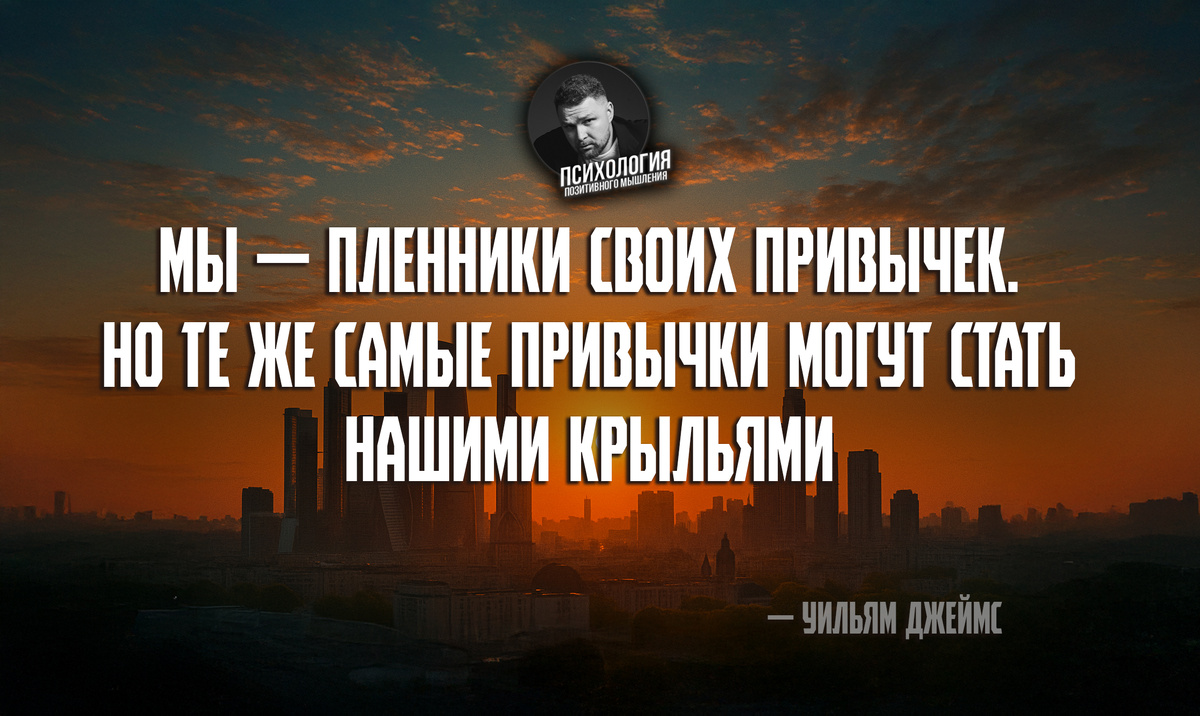 — Уильям Джеймс, философ и психолог, стоявший у истоков прагматизма и психологии сознания. Один из первых, кто начал говорить о силе воли и о том, как действия формируют личность. Иногда кажется, что ты просто живёшь. Встал, умылся, уткнулся в ленту, выпил кофе, сказал «пора бы» — и опять остался на месте. А на самом деле — ты просто повторяешь. Каждый день, как калька. Как будто тебя где-то закольцевали, и ты даже не заметил. Привычка — это не только то, что ты делаешь. Это то, во что ты себя превращаешь. Каждый раз, когда ты выбираешь «потом», ты прокладываешь новую тропинку в лесу своей нейронной карты. Один раз — след. Десять — дорога. Сто — маршрут, по которому потом будешь идти даже с закрытыми глазами. И вот в какой-то момент ты уже не решаешь — ты просто катишься по рельсам, которые сам себе положил. Но в этом и ключ: те же самые рельсы можно положить в другую сторону. В сторону, где ты не застрял, а летишь. Однажды Джеймс написал: «Если ты хочешь изменить свою жизнь, начни с т