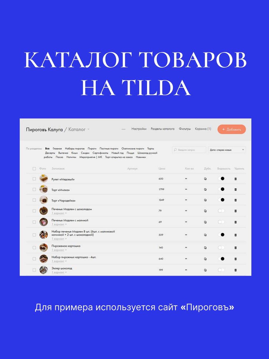 Создание сайта интернет-магазина на Tilda — это проще, чем кажется!🚀 Хотите упростить себе жизнь? Воспользуйтесь каталогом!📄 Это супер удобная панель, которая поможет вам легко управлять товарами на вашем сайте. Добавлять, редактировать или удалять позиции — всё это делается в несколько кликов!🔥 Ваш магазин станет более понятным и удобным для покупателей. Не знаете, с чего начать? Наш веб-отдел готов помочь! Листайте карточки и пробуйте, чтобы получить максимум от вашего интернет-магазина! ✨