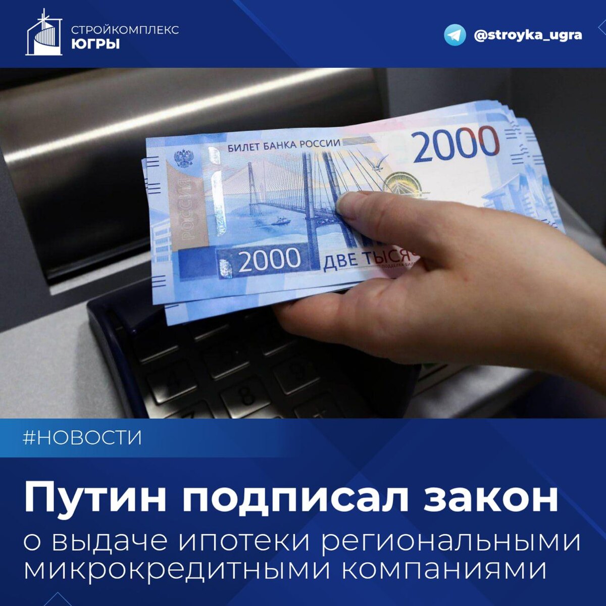 Путин подписал закон о выдаче ипотеки региональными микрокредитными компаниями