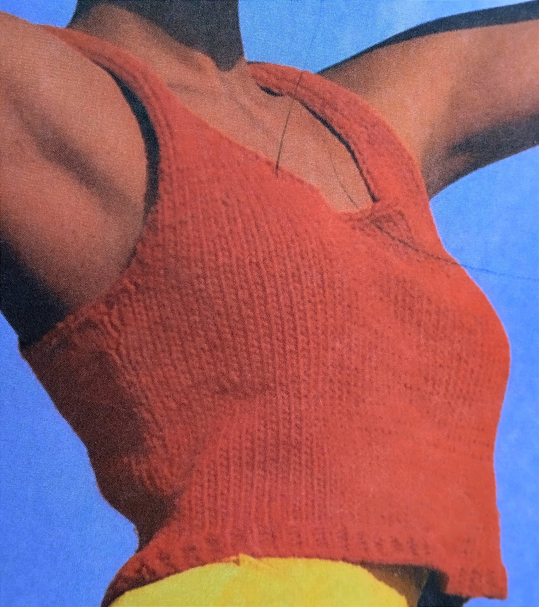 Выкройка в конце статьи. Размеры: Модель рассчитана на фигуры с окружностью груди 81 (86, 91, 96) см. Описание работы приводится для наименьшего размера, а в скобках приводятся цифры для более крупных изделий. Если присутствует только одна цифра, то она относится ко всем размерам. Параметры готового изделия: Материалы: Пряжа оригинал Пряжа- заменитель Примечание В разделе "Материалы" цифра в кружке -5- обозначает маркировку пряжи (см.таблицу на с. 8). Цвет пряжи дан условно. Вы можете подбирать цвета в соответствии с вашими пристрастиями и вкусом. Также вам понравится эта статья. Чулочная вязка 10×10 см=14 п. ×12 р. ; на спицы √8 (5, 5) мм. Для наиболее точного соответствия размерам, указанным на выкройке, проверьте плотность вязания по образцу. После того, как вы свяжете образец, намочите его. Разгладьте его руками, чтобы он был совершенно плоским, и дайте высохнуть. Затем производите замеры. Вывязывание пройм спинки: Закр. по 10 (10, 11,11) п. в нач. след. 2 р., по 3 п. в н