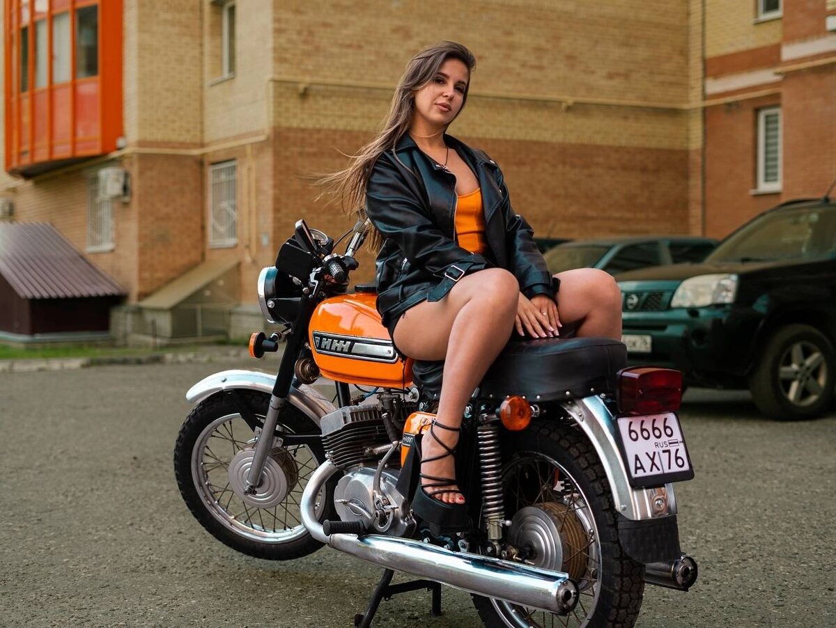 😏Я все понимаю #ИЖ Юпитер 5 в оранжевом цвете 🧡 девушка - красивая такая тоже в оранжевом цвете, но номера крутые 🙌 а что 🙄 так можно было… 😎