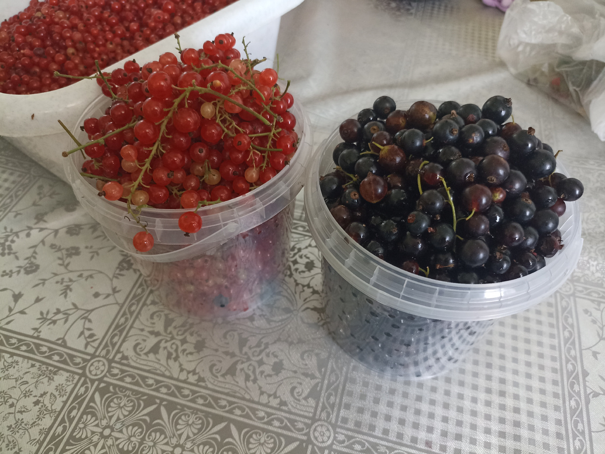 Собранные ягоды, перебираю... Удаляю листья, веточки... Промываю и даю некоторое время стечь воде... Затем в большой кастрюле всё перебиваю блендером... Я пробовала через соковыжималку пропустить ягоды по совету мужа... Чтобы побыстрее вышло!!! Ага... Теперь в кухне стены придётся перекрашивать🙂🙃😭... Делать это буду не сейчас, а ближе к осени, когда основные заготовки сделаю... На два перекраса сил и нервов моих не хватит...