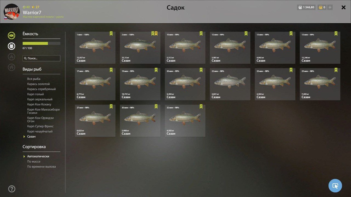 Водоем:Ахтуба Рыба:Сазан Координаты:99:84 Клипса:22