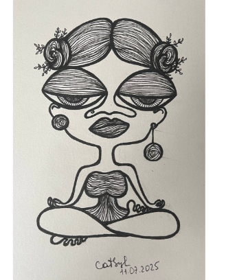 За 2 недели отпуска блокнот брала не часто, потому что очень много ходили, и совсем не до этого было. Но всё же кое-какие наброски сделала. Это потом планируется перенести на холст, но в другом виде))) Может, когда-то сделаю. А пока делюсь своими странностями) На самом деле, у меня в блокноте было 2 уже начатых наброска, но их было долго рисовать, и вдруг захотелось сделать это. И помедитировала, рисуя полосочки) А потом уже я медленно дорисовывала то, что раньше начала) И это у меня планируется серия дам))) Но пока только в мыслях. И опять свою серию дам прервала из-за внезапно возникшей идеи)) Смысл в том, что дети впитывают информацию из окружающего пространства - слушают и наблюдают за взрослыми. И потом из них вырастает то, что вырастает. И опять к серии моих дам вернулась. Не только же в моём окружении некоторых дам козами называют? Дамы остаются недоделанными, а я неожиданно решила выйти в оффлайн))) А то зависаю часто. И уже думала, что выход в оффлайн будет последним из отпуск