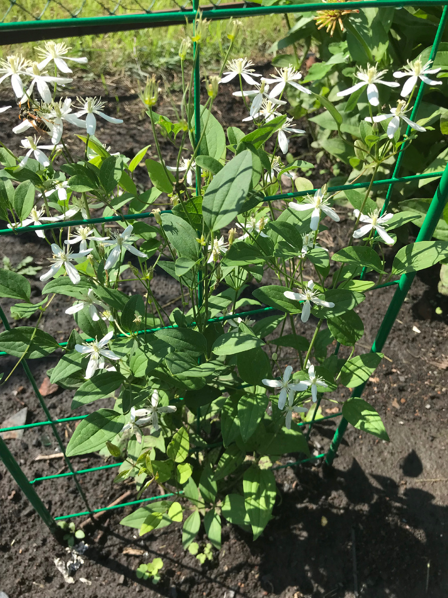 Клематис мелкоцветковый Маньчжурский был посажен семенами в прошлом году . Всходов ждала очень долго , почти 6 месяцев . Пикировала сразу в грунт на детскую грядку , где он и зимовал . Ничем не укрывала, сеянцев было много, поэтому надеялась , что сохранятся .Весной взошли все . Посадила на постоянное место и вот он в июне уже зацвёл . Цветение продолжительное , сейчас конец июля , а клематис все цветет и завязывает семена . Пока не очень высокий , всего 60 см , но весь в цветах . Оно того стоило !