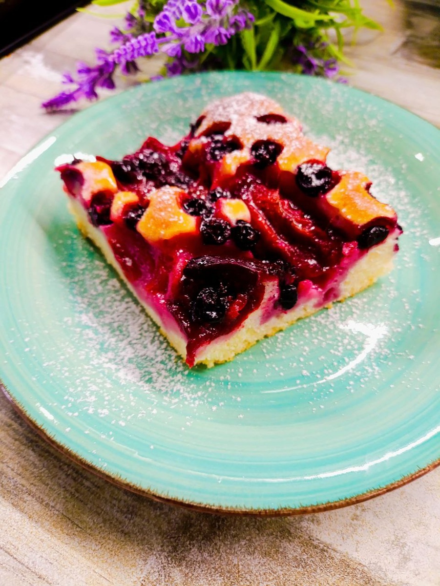 ТЕСТО ДЛЯ ПИРОГА СО СЛИВАМИ/ИНЖИРОМ/АБРИКОСАМИ/ЯБЛОКАМИ/ЯГОДАМИ 🍓🍎🫐🍑 В сезон слив, абрикосов, нектаринов и ягод (сейчас особенно хороши малина и смородина!) обязательно радую близких этим простым и вкусным пирогом. Тесто для ленивых, готовится в два счёта Ингредиенты: • Яйца - 3 шт. • Сахар - 150 гр. • Сметана/йогурт (без добавок) - 200 гр. • Растительное масло - 100 мл. • Мука - 230 гр. • Разрыхлитель - 10 гр. • Ванилин/ванильный сахар - по вкусу Приготовление: 1. Яйца с сахаром тщательно взбейте до посветления. 2. Добавьте сметану, масло, ванилин и разрыхлитель – перемешайте до однородности. 3. Постепенно всыпьте муку, аккуратно перемешивая, чтобы не было комков. 4. Форму для выпечки (примерно 33*22 см) смажьте растительным маслом и присыпьте манкой или мукой. Вылейте тесто. 5. Сверху равномерно распределите фруктово-ягодную начинку. 6. Выпекайте в разогретой духовке: 20 минут при 200°C, затем 20 минут при 170°C. Готовность проверяйте зубочисткой. Готовый пирог слегк