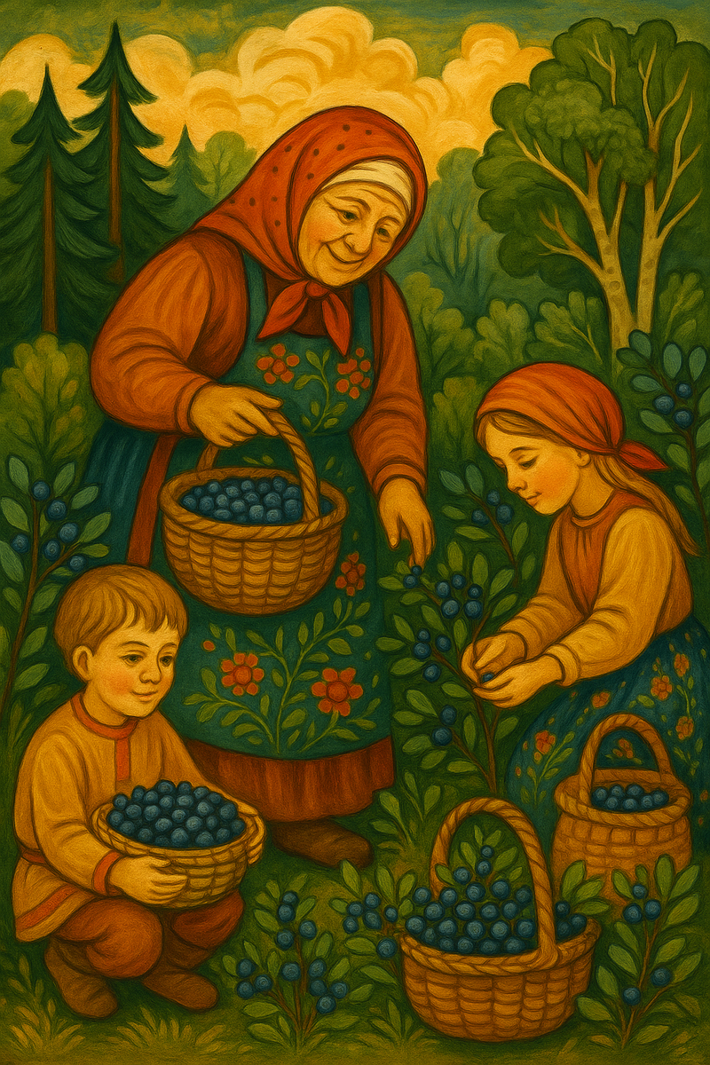 «Фома черничник — пальцы в чернила, а душа в улыбке» Лес умолкает от жары, но стоит шагнуть за еловый полог — и под ногами вспыхивают синие бусинки. На Черничного Фому хозяйки выходили «на промысел сладких чернил»: первые спелые черники, морошки, костяники. Бабушки говорили: собрать корзинку — все беды вымолвить, губы сладким замолить. 1. Первая горсть — молча