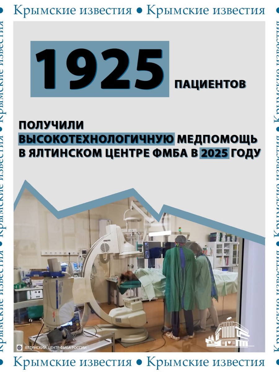 🏥 Почти 2 тыс крымчан получили высокотехнологичную медпомощь в ялтинском центре ФМБА с начала года. Здесь на базе 13 отделений лечат по 9 ключевым направлениям – это сердечно-сосудистая хирургия, нейрохирургия, гинекология, онкология и другие, сообщили в пресс-службе учреждения. Также в центре внедряют новые медицинские разработки. Например, в реабилитации активно используют элементы виртуальной реальности. Для этого здесь приобрели 3 специальных аппарата. Крымские известия. Больше новостей