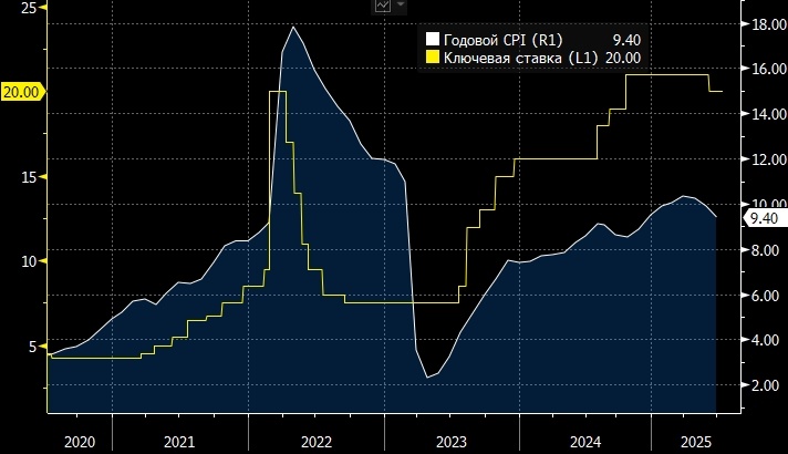 "Согласно данным Росстата, за 8-14 июля наблюдалась дефляция 0,05% н/н после роста цен на 0,02% н/н неделей ранее. Это первая недельная дефляция с начала года - такая динамика обусловлена ускорением дефляции в продовольственном сегменте, тогда как в непродовольственном сегменте наблюдается тенденция на восстановление инфляции, которая усиливается повышенным ростом цен на бензин. По состоянию на 21 июля рост цен составил 0,76% с начала месяца, а в годовом выражении инфляция замедлилась до 9,17% г/г. Таким образом, инфляция остается пониженной, и мы сохраняем наше видение, что ЦБ РФ понизит ставку до 18% на завтрашнем заседании", - пишут экономисты Наталья Орлова и Валерия Кобяк.