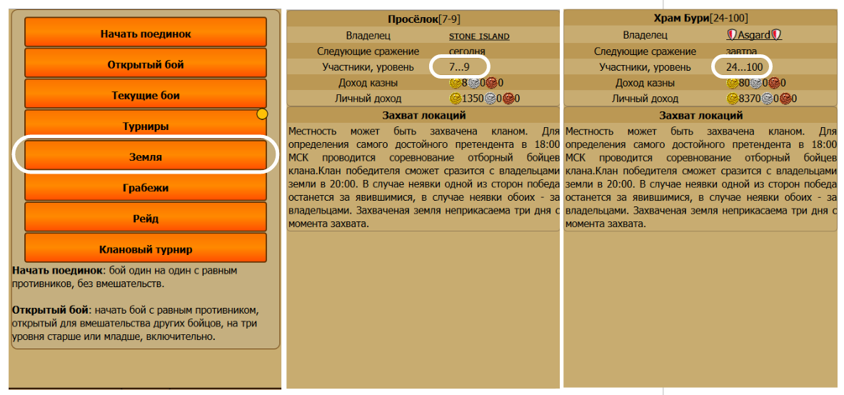 - Бои за земли и реальный актив идут на лвл: 9, 11, 13, 15, 17, 20, 22, 36.