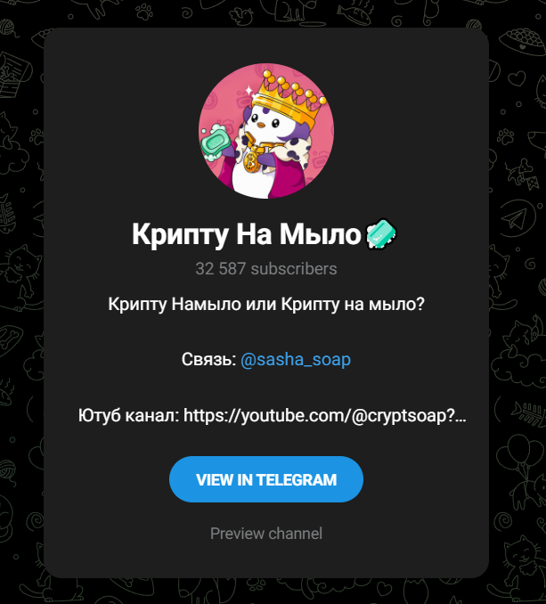 t me/CryptSoap — это канал в Telegram, позиционирующий себя как «комьюнити трейдеров» с уникальными схемами заработка на криптовалютах. Тут вам и торговые сигналы, и «проверенные схемы закупа», и даже советы по инвестированию. Вроде бы всё как у всех… но с подвохом.