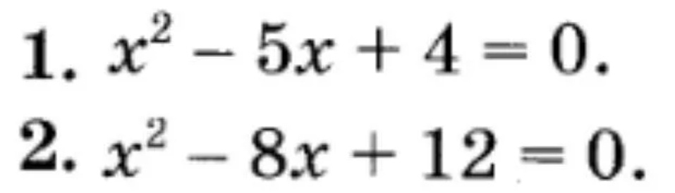 Вот и последняя часть моей статьи. Я покажу примеры уравнений и распишу решение.😉 Возьмём пример от сюда: x²±ax±b=0 x(1)+x(2)=-a x(1)×x(2)=b x²-5x+4=0 1)x(1)+x(2)=-a => x(1)+x(2)=-(-5)=5 2)x(1)×x(2)=b => x(1)×x(2)=4 Думаем так: Нужно найти два числа сумма которых равна 5, а произведение 4. 1+4=5 1×4=4 Ответ:x(1)=4 , x(2)=1 Для первого значения x=x(1) 1²-5×1+4=0 1-5+4=0 Верно Для второго значения x=x(2) 4²-5×4+4=0 16-20+4=0 Верно Вот и вся формула🙃 ответ второго уравнения напишите в комментариях)) Удачи!😘