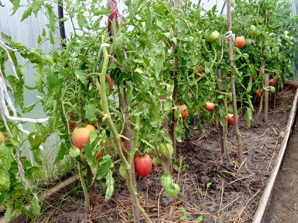 В начале июля, написал статью о том что в этом году погода дождливая и прохладная. И урожай помидор под вопросом. Но вот пришла июльская жара, и все растения пошли в рост. И уже на кустах стали краснеть помидоры 🍅. Не знаю какой это сорт, но плоды очень крупные вырастают. Бывают и такие. Конечно для засолки этот сорт не подойдёт, но в салате очень вкусные. Есть конечно у этого сорта и недостатки. На кусте их вырастает не очень много, но зато крупные. И ещё наблюдал, правда в прошлом году. Некоторые особо крупные плоды, начинают растрескиваться. А почему, пока не ясно.