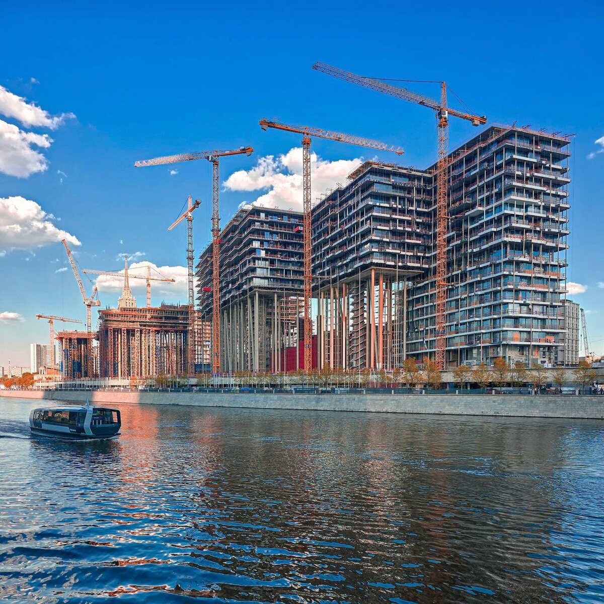 На западной «ленте» жилого комплекса «Бадаевский» со всех 86 35-метровых колонн сняты временные опоры. Сегодня строители приступили к нанесению на колонны огнезащитного и финишного покрытия белого цвета. Возведение временных опорных конструкций началось ранее, нежели установка самих колонн. Их основная функция – закрепление сталежелезобетонных колонн еще до момента их бетонирования и восприятие нагрузок от конструкций супер-слэба и выше до набора передаточной прочности колонн, заданной в проектных решениях. Напомним, в марте 2025 года было полностью завершено бетонирование колонн на западной «ленте». Строительство проходило с многоступенчатым контролем качества. На заводах-производителях осуществлялся строгий надзор за стандартами выпускаемой продукции, а также тщательная проверка сертификатов применяемых материалов: стального проката, сварочных материалов и пр. На строительной площадке комплекса, как итоговой точке приема конструкций, был организован входной контроль – происходила про
