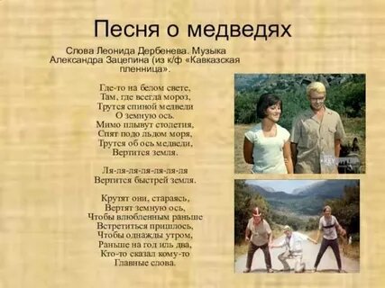 Однако именно после «Кавказской пленницы» Ведищева исполнит «Помоги мне» в «Бриллиантовой руке», «Колыбельную медведицы» - в «Умке», «Лесной олень» в фильме «Ох уж эта Настя!». И хотя Аида Ведищева давно уже живет в США и лишь изредка приезжает в Россию, «Песенка о медведях» до сих остается в ее репертуаре.