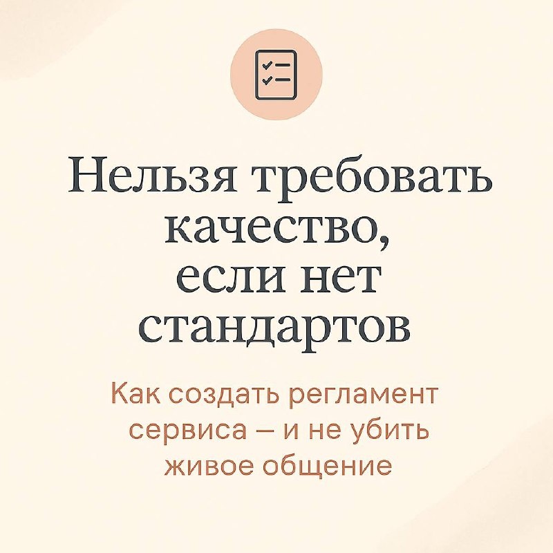 Когда в салоне снижается качество, клиенты «что-то чувствуют не так» и начинают уходить — владелец чаще всего винит персонал. Но правда в другом: если нет прописанных стандартов, не с чего требовать. Потому что каждый делает “как умеет”, “как было в прошлой работе” или “по ощущениям”. А ощущения — у всех разные. Хороший сервис — это не удачное совпадение. Это настроенный процесс, в котором у каждого сотрудника есть роль, текст, тон и цель. 🎭 Стандарты сервиса — это как сценарий Представьте театр без репетиций. Актёры вышли на сцену, кто-то что-то вспомнил, кто-то говорит в своей манере, кто-то забыл выйти. Публика в замешательстве. Но вроде все старались. Примерно так выглядит салон без регламентов. Сервис строится “по настроению”. Улыбка есть, но чёткости — нет. А если нет сценария — невозможно сыграть спектакль дважды одинаково. Клиент не знает, чего ожидать, а руководитель — не может влиять на результат. 🧾 Что включает в себя «сценарий» сервиса Сервис — это не только «как встрет