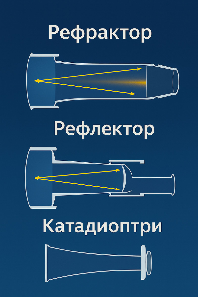 Рано или поздно каждый «запавший» на ночное небо человек приходит к идее: «Куплю телескоп!» И тут всё становится сложнее: модели, аббревиатуры, уверенные советы «берите рефрактор» и «нет, Добсон лучше». Чтобы не выбросить деньги и не разочароваться, нужна не реклама, а честный разговор. Именно его и начнём. Подумайте: телескоп действительно нужен прямо сейчас? Звучит странно, но в половине случаев новичку хватает бинокля 10×50. Он дешёвый, лёгкий, даёт широкое поле зрения и сразу открывает массу деталей: кратеры на Луне, спутники Юпитера (Галилеевы спутники), фазы Венеры, Млечный Путь. Главное — стабильная опора (штатив или просто локти на перила). Если же вы уже «залипаете» на Луну в каждый ясный вечер, задаётесь вопросами о Туманности Ориона и хотите «побольше». Тогда — да, пора выбирать «трубу». Типы телескопов без мифов 1. Рефракторы (линзовые) Принцип — стандартная труба с линзами. 2. Рефлекторы (зеркальные) Главный элемент — параболическое зеркало на дне трубы. 3. Катадиоптрики