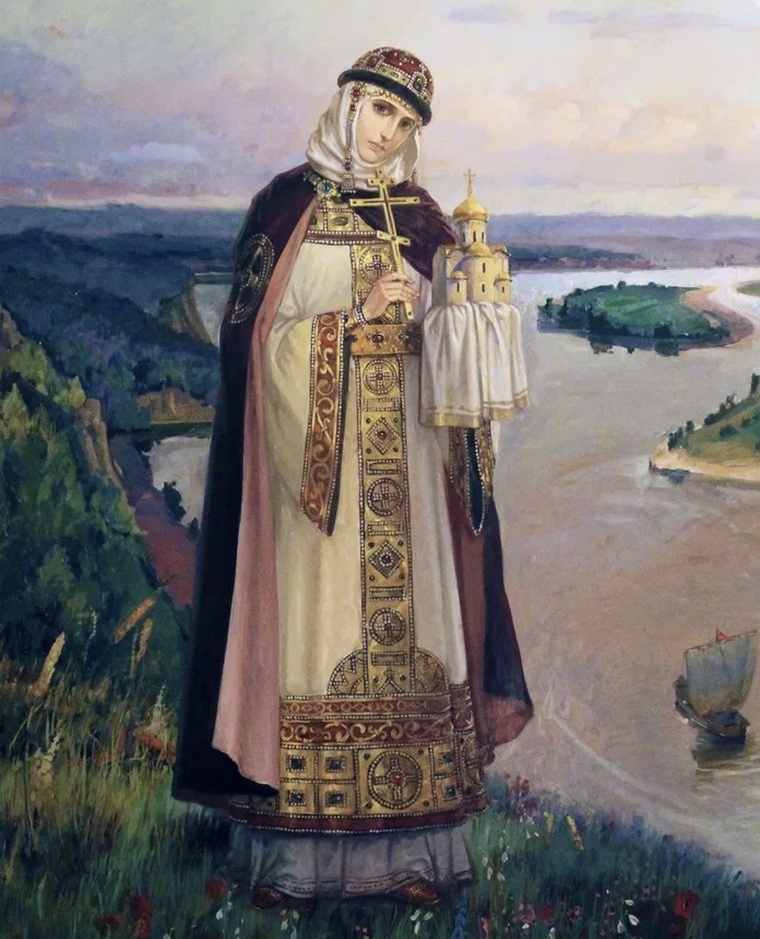Святая княгиня Российская Ольга справедливо называется в Русской Православной Церкви равноапостольной, потому что, подобно апостолам Христовым, насаждала среди наших предков слово истины. Её жизнь и просветительская деятельность падает на середину 10 века. Летопись говорит, что она принадлежала к роду князей Изборских — одной из древнерусских княжеских династий, которые впоследствии были вытеснены Рюриковичами или частично слились с ними посредством браков. Предание называет село Выбуты, находящееся недалеко от Пскова вверх по реке Великой, её родовым имением. В этих местах был Ольгин мост у древней переправы, где Ольга встретилась с Игорем, великим князем Киевским, став его женой; есть деревни Ольженец и Ольгино Поле, в реке Великой есть Ольгины Ворота, местечко Ольгина Гора, около Псковского озера есть Ольгин Крест, у села Выбуты находится Ольгин Камень; в Троицком соборе Пскова находится придел в честь равноапостольной Ольги. Русь при правлении Ольги стала великой державой. Лишь Ви