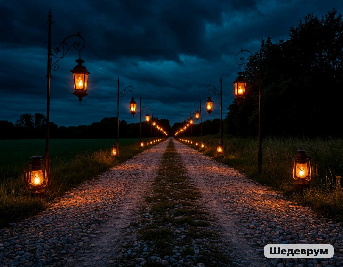 Ночь была тихая. Лишь сверчки чирикали в траве. Выйдя на деревенский пятак, Митька посмотрел в сторону выезда из деревни. Через ночное поле тянулась широкая полоса ярких фонарей, что зажигались с наступлением темноты, дабы путникам было легче добраться. Мужик вздохнул.