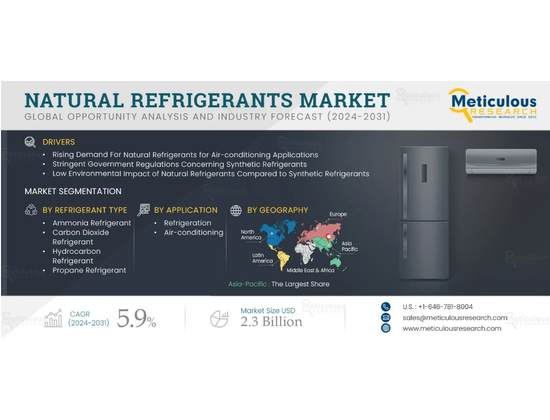 Согласно новому отчёту Meticulous Research, ожидается, что мировой рынок натуральных хладагентов вырастет с 1,5 млрд долларов в 2025 году до 2,3 млрд долларов к 2032 году. Прогнозируемый совокупный годовой темп роста (CAGR) составляет 5,9 % благодаря мерам регулирования, направленным на поэтапный отказ от гидрофторуглеродов (ГФУ), и растущему спросу на экологически чистые решения для охлаждения.