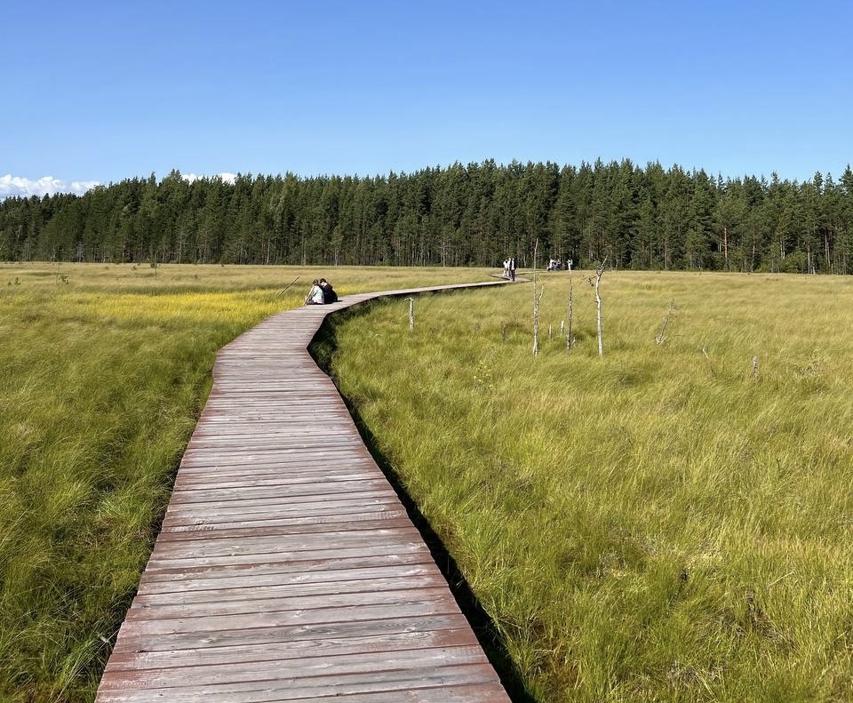 Это маршрут, который проходит по крупнейшей ненарушенной болотной системе города. Болото никогда не осушалось, не эксплуатировалось человеком, и именно поэтому так ценится учёными, экологами и всеми, кто ищет настоящую дикую природу без фальши. Протяженность: около 3,5 км Локация: Курортный район, Сестрорецк Покрытие маршрута: деревянный настил почти по всей длине + удобная тропа по лесу Время от центра Петербурга: ~ 40 минут Лучше начинать с южного входа — так тропа ощущается более логично, да и ближе от станции. Возьмите с собой воду, на маршруте нет инфраструктуры. Это часть территории особо охраняемый памятник природы, включённый в сеть экотроп Ленинградской области. Прогулка сопровождается уникальными пейзажами: сочетание северной природы, болотных озёр, туманов и мшистых лужаек. Большую часть маршрута составляет деревянный настил, проложенный по болотистой местности. Вдоль тропы стоят стенды с информацией о флоре и фауне болота, типах ландшафта и истории его формирования. Это пр