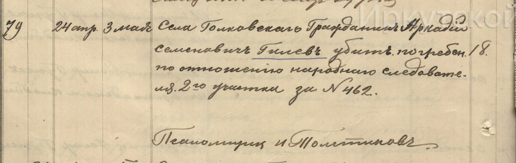 Записи о насильственных смертях в метрических книгах всегда вгоняют в ступор. В Иркутской губернии не редко погибшим являлся какой-нибудь ссыльный, всё же уголовный элемент.