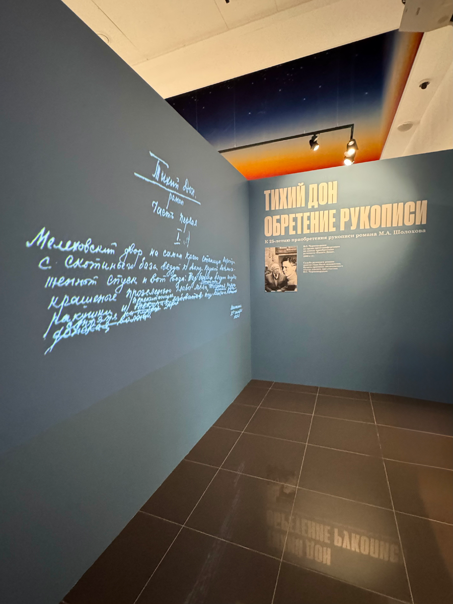 Выставка открылась 7 декабря 2024 года. 25 лет назад, в 1999 году, рукопись знаменитого романа удалось приобрести благодаря деятельности Шолоховского комитета и личного участия нашего земляка - экс-премьера Виктора Черномырдина. До этого многие годы оригинал произведения, за которое Шолохов получил Нобелевскую премию, считался утерянным. Выставка в Музее Черномырдина состоит из четырех разделов. Два из них («Покупка рукописи» и «Судьба романа») рассказывают об истории «Тихого Дона». На выставке представлены раритеты из Государственного музея-заповедника М.А. Шолохова и Института мировой литературы РАН, в том числе оригинальные листы ”Тихого Дона” со следами работы писателя. Экспозиция «Глазами художника» посвящена различным художественным интерпретациям произведения. ”Тихий Дон” на экране - уже про кинематографические интерпретации произведения. На церемонии открытия выставки в Государственный музей-заповедник М. А. Шолохова «Тихий Дон» переданы более 300 негативов фотографий писателя,