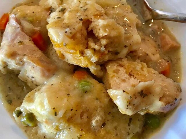 Курица с клецками в медленноварке Это простой рецепт для медленноварки, который готовится, пока вы на работе! Это замечательное блюдо в холодный снежный день. У меня четверо детей, которые придирчиво относятся к еде, и они обожают это блюдо! Приятного аппетита! ⌛ Подготовка: 10 мин. ⏰ Приготовление: 6 час. 10 мин. 🍴 Количество: 8 порций Ингредиенты ✅ 4 половинки куриных грудок без кожи и костей ✅ 2 столовые ложки сливочного масла ✅ 2 банки сгущенного куриного супа со сливками ✅ 1 луковица, мелко нарезанная кубиками ✅ 2 упаковки охлажденного бисквитного теста (300 гр), разорванного на кусочки. Инструкция приготовления 1. Поместите курицу, масло, суп и лук в кастрюлю медленноварку и залейте водой, чтобы она покрывала курицу. 2. Накройте крышкой и готовьте 5-6 часов на высокой мощности. Примерно за 30 минут до подачи на стол положите в медленноварку порванное бисквитное тесто. Готовьте, пока тесто не перестанет быть сырым в центре. 📷 https://furshett.ru/uploads/supy-tushenye-blud