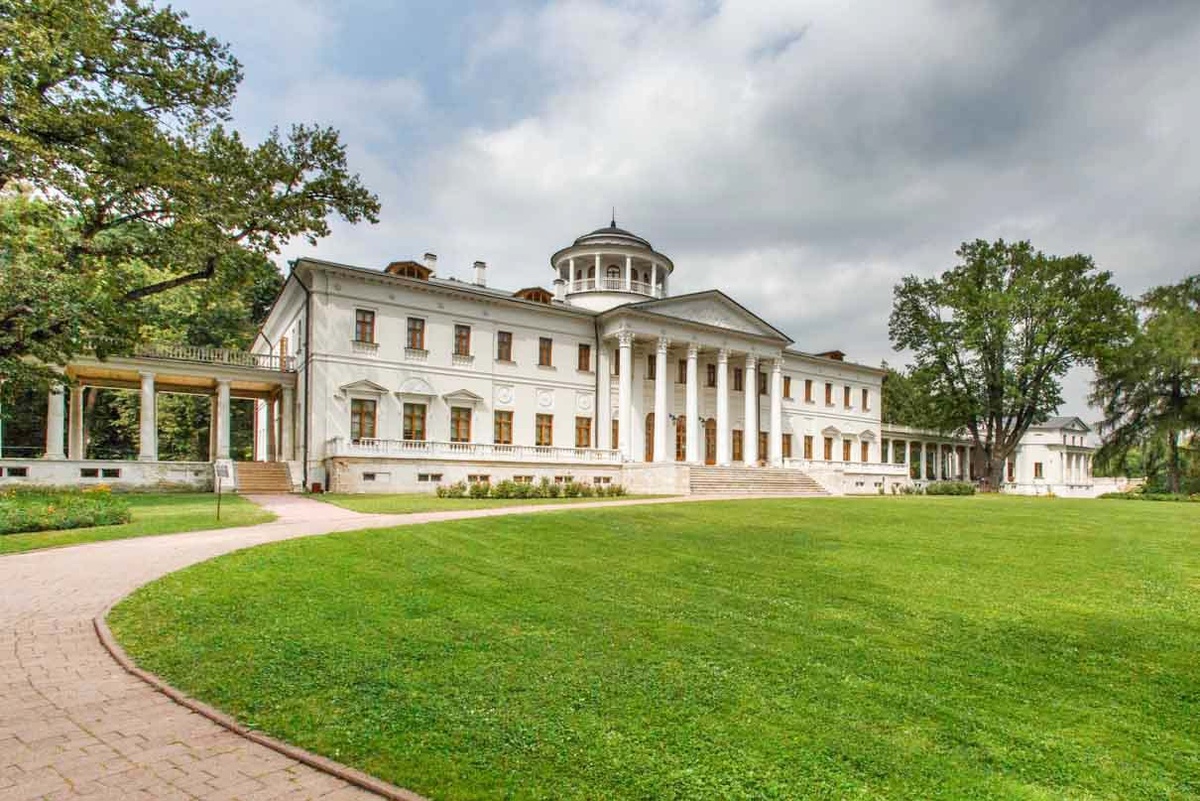 В последнюю очередь князь принялся и за господский дом, перестройка которого шла с 1800 по 1806 год. Андрей Иванович сносит кирпичное здание предыдущего владельца и по проекту неизвестного архитектора возводит величественный особняк в стиле зрелого классицизма. Вяземский, по семейному преданию, лично делал пометки на чертежах, продумывал все до последней детали. По его плану верхняя часть дома стала смотровой площадкой – бельведером, где князь, увлекавшийся изучением небесных светил, вполне мог бы разместить обсерваторию. Две открытые галереи с колоннадами соединяли дом с восточным и западным флигелями. Чувствуется, что Андрей Иванович строил с размахом.