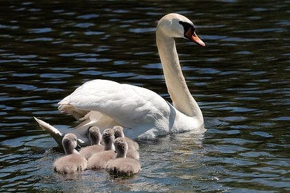 В Смоленске спасли семью лебедей из осушаемого водоема