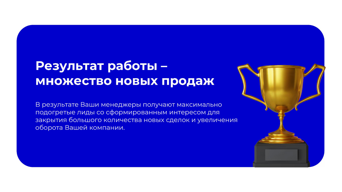 Если у вас нет свободных сотрудников для обработки контактов, вы можете передать прозвон нашей команде 🌸 Преимущества этого формата: ✔️ Все контакты обрабатываются оперативно, благодаря опыту и специализации операторов; ✔️ Вам не нужно нанимать, обучать или отвлекать своих сотрудников - мы передаем только откликнувшихся клиентов; ✔️ Вы оплачиваете исключительно подтверждённые разговоры - пропущенные вызовы, автоответчики и “молчащие” номера в расчет не идут.