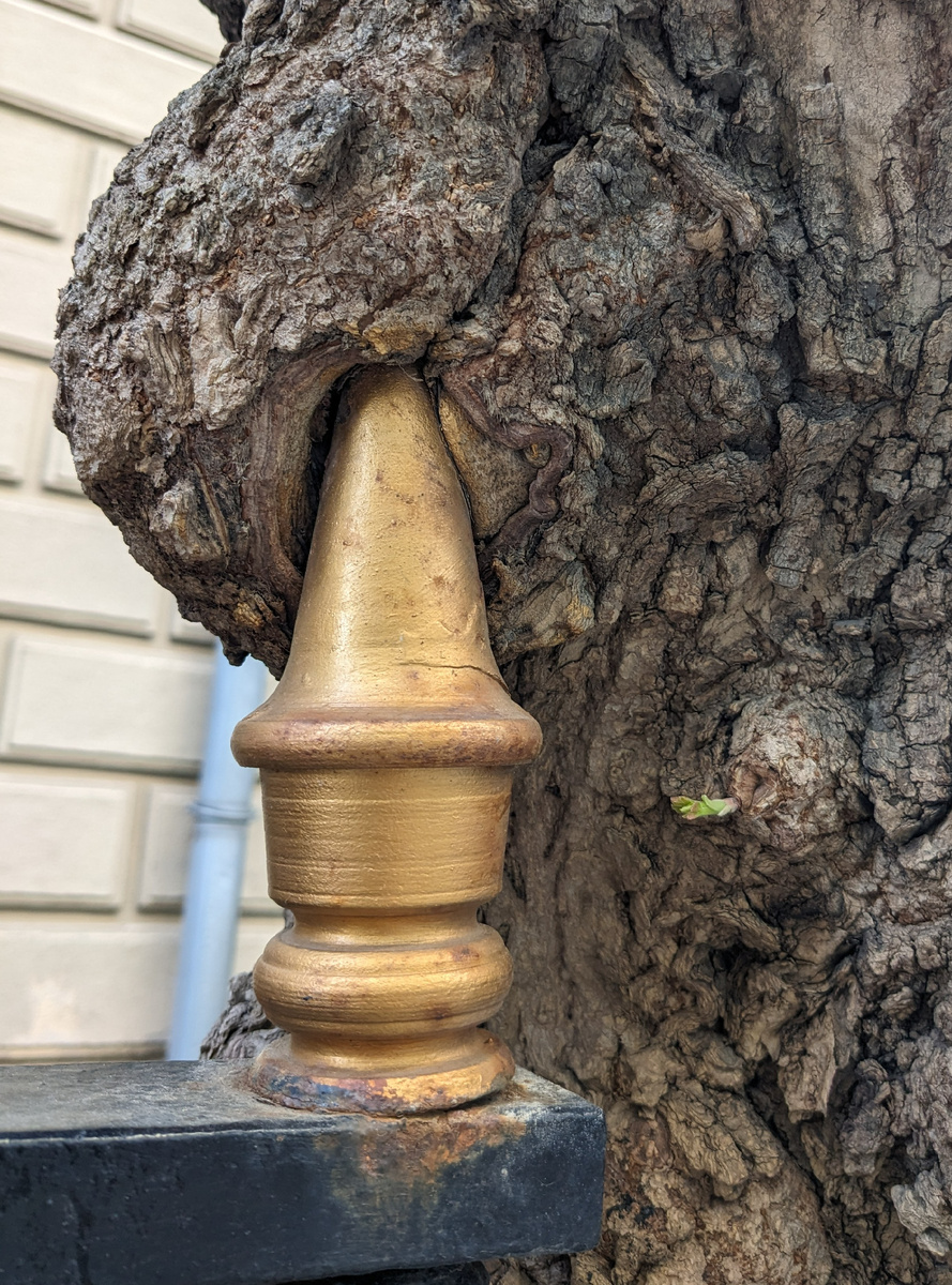Но она росла, росла, росла... пока не выросла в большую ограду и не вросла в нависающее над ней дерево. Может, и до сих пор растёт...