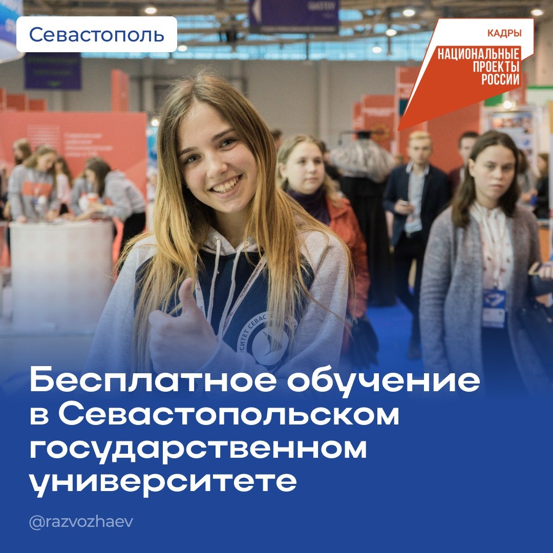 Если вы хотите получить новую профессию или повысить квалификацию — поможет нацпроект «Кадры». СевГУ проводит набор на обучение профессиям в рамках нацпроекта. До 27 июля университет принимает заявки на обучение по профессиям: ▫Специалист по стандартизации и метрологии ▫Основы веб-дизайна ▫Оператор станков с программным управлением ▫Инженер по организации, эксплуатации и ремонту зданий и сооружений ▫Геодезист ▫Оператор беспилотных авиационных систем Кто может учиться? ▫Люди предпенсионного возраста и возраста 50+ ▫Граждане в отпуске по уходу за ребенком до 3 лет и неработающие женщины, имеющие детей до 7 лет ▫Ищущие новую работу и обратившиеся в Центр занятости ▫Зарегистрированные в центре занятости как безработные ▫Молодые люди, которые ищут работу больше 4 месяцев после окончания обучения ▫Участники и ветераны боевых