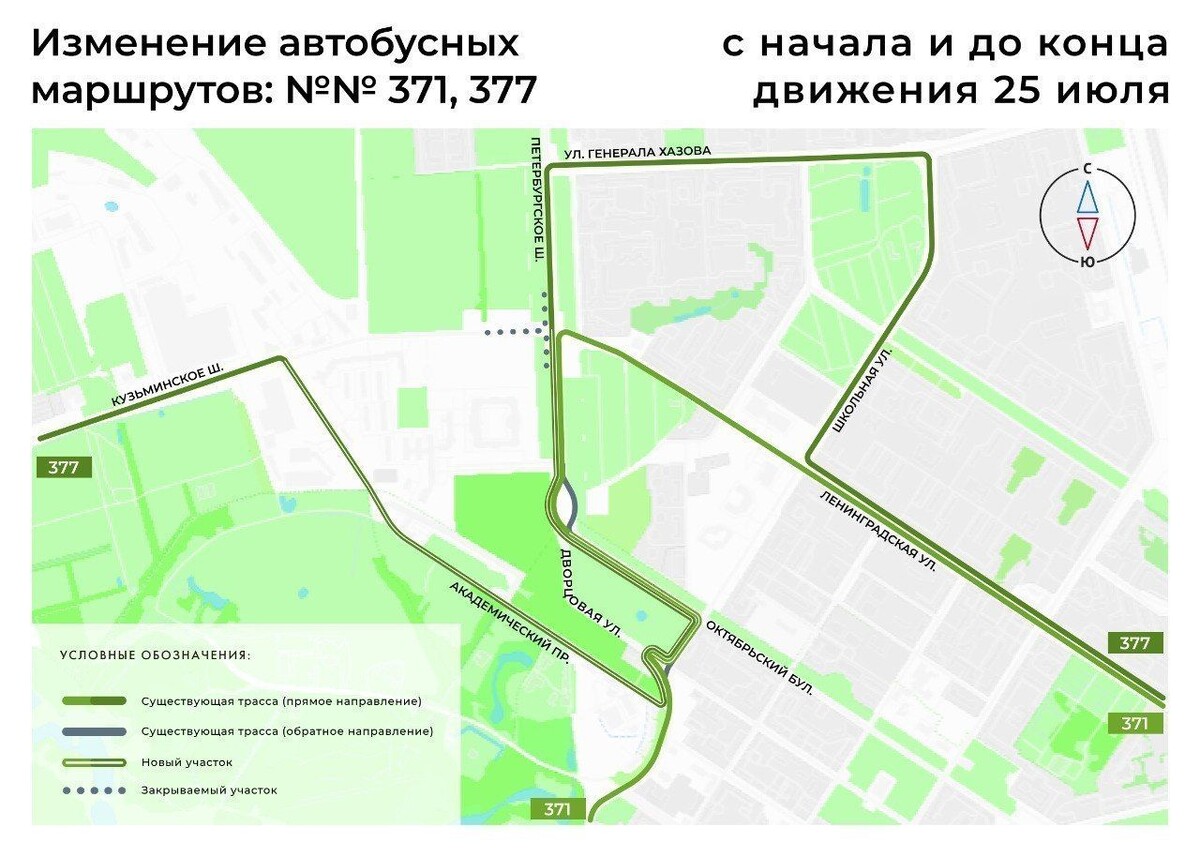 Ремонт Петербургского шоссе 25 июля изменит движение автобусов №371 и №377