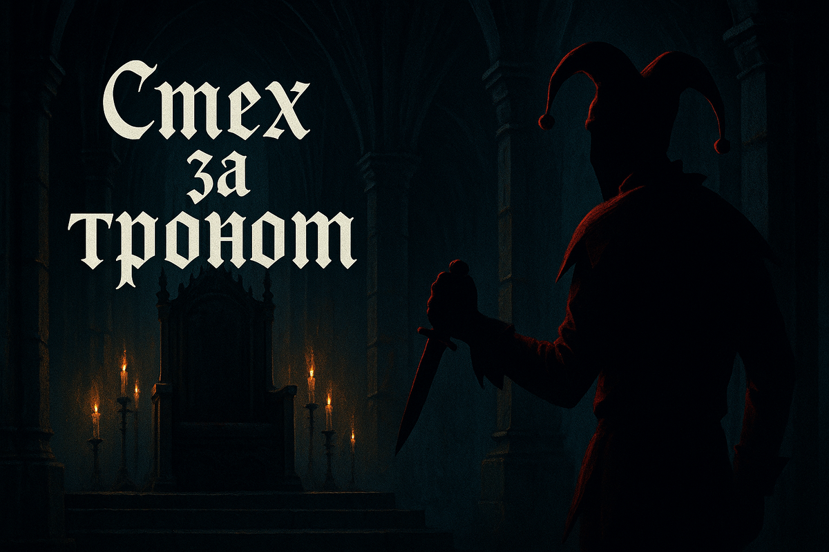 Полумрак тронного зала облегал стены, словно тяжёлый бархатный саван. По резным колоннам стекают чёрные тени, отражаясь в позолоченных барельефах, изображающих сцены давних битв и предательств. В дальнем углу мерцали восковые свечи, крича о своей неумолимости: капли жёлтого воска падали на холодный камень и, застывая, напоминали капли кровавой росы. Здесь, в самом сердце королевского дворца, власть и страх слились воедино; каждый звук — шёпот заговоров, каждый отблеск — предчувствие конца. Лютер, шут короля, ступал по залу беззвучно. Его плащ из выцветшей пурпурной ткани колыхался, словно тень живого существа, а лицо — бледное, с тёмными кругами под глазами — казалось маской венецианского проклятия. В груди его щемило: сердца его битый, но сейчас оно билось ровнее, чем когда-либо. Он знал, что должен быть тут не забавником, а хранителем собственного возмездия. Вспышка памяти пронзила сознание: давний праздник во дворце, смех, блистательная шутовская шапочка и… удар шпиля короля. Тот ре