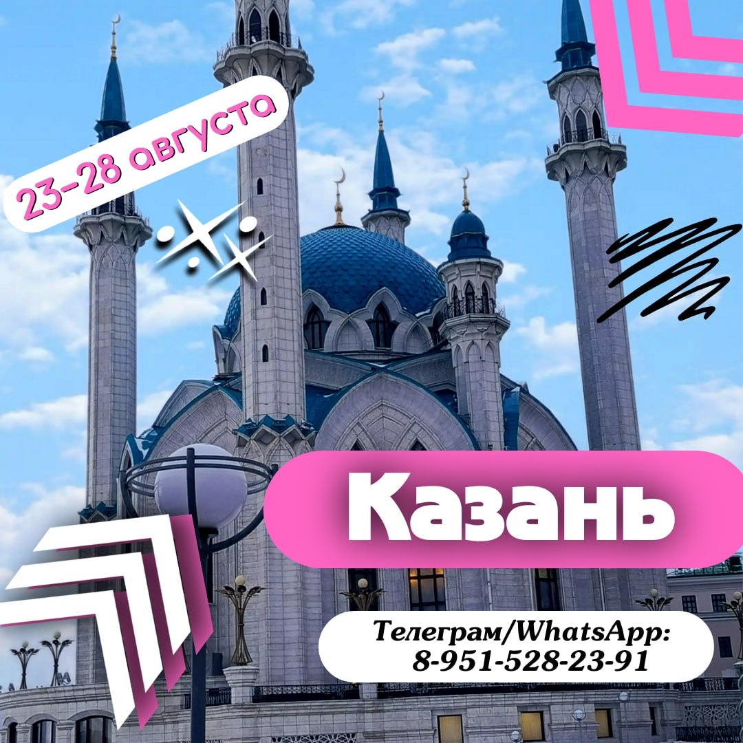 ❤ Казань – «белоснежное чудо на волжских берегах»! 🔥 На самом деле, этот удивительный город живописно раскинулся по берегам трех рек – Казанки, Камы и Волги. 🤩🤩🤩🤩➖Это город 🤩🤩🤩🤩➖необыкновенно 🤩🤩🤩🤩➖красивых людей, 🤩🤩🤩🤩➖невероятно теплой атмосферы и музыки на улицах. 💫 Казань – настоящий «город контрастов» - город, возникший на месте пересечения дорог Запада и Востока, впитавший в себя самые разные традиции, верования и культуры... 🩵🔤🔤🔤🔤🔤🔤🩵 ➖➖➖➖➖➖➖➖➖ 🩵 Дата тура: 23-28 августа 🩵 Стоимость: от 52800Р/чел. Дополнительные расходы: ✖Доп. питание (ужины) ✖Доп. плата за одноместное размещение 14600Р ✖Личные расходы ПОДРОБНЕЕ 🖤 ЗДЕСЬ ➖➖➖➖➖➖➖➖➖ Пишите нам: 📱 WhatsApp: 8-951-528-23-91 ✈ Телеграм: @TRIP_ADM_Bot