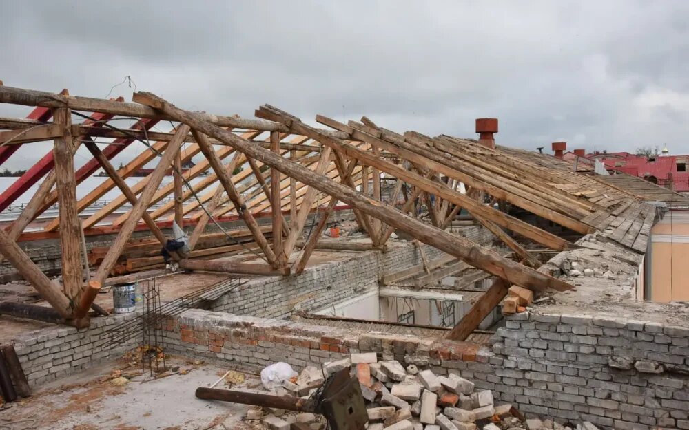Реконструкция филиала Сеченовского университета в Брянске продолжается динамично. Как пояснил губернатор Александр Богомаз, строительные работы идут в хорошем темпе, и объект находится на его личном контроле. По словам главы региона, на площадке трудятся 150 человек. В корпусе активно ведутся работы по устройству новой стропильной системы, полностью завезён профлист, на крыше заливаются монолитные железобетонные пояса для усиления стен. Фото: Телеграм-канал Александра Богомаза Александр Богомаз отметил, что в основном учебном корпусе 90 процентов деревянных перекрытий уже заменены на бетонные. Более половины полов покрыты звукоизоляцией и подготовлены к чистовой отделке. В коридорах и аудиториях планируется укладка плитки. Уже начат монтаж металлического каркаса для перегородок, ведётся закладка дверных проёмов. Также глава региона подчеркнул, что особое внимание уделено инженерным системам. По всему зданию монтируется вентиляция, а с понедельника строители приступят к установке стояко