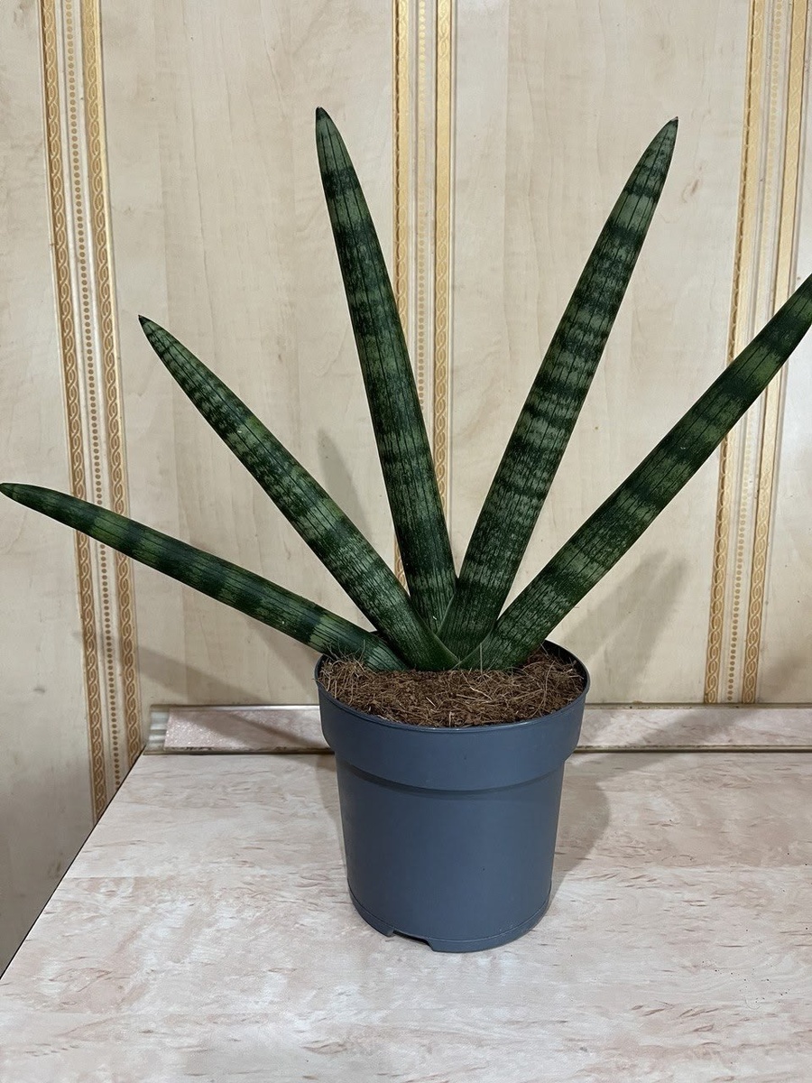 Добрый день, подскажите пожалуйста. Купила сансиеверию целиндрическую, хотелось бы пересадить в красивый горшок. Этот— 1,4 л. Какой обьем нужен этому растению и какой грунт?Высота листьев—26 см