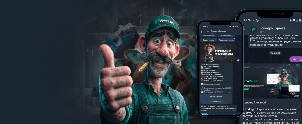 Forkagro запускает интеллектуального чат-бота Express для агробизнеса Forkagro представляет новый инструмент цифровой коммуникации — чат-бот Forkagro Express. С его помощью пользователи могут в любое время суток отправлять заявки напрямую в систему, минуя лишние шаги. На начальном этапе бот будет проходить обучение, обрабатывая входящие сообщения с участием модераторов. Однако в дальнейшем система перейдёт на автоматическое распознавание реальных заявок, формируя из них полноценные обращения — быстро, точно и без задержек. Forkagro Express уже доступен в популярных мессенджерах: Telegram ВКонтакте — достаточно просто написать сообщение в официальную группу WhatsApp — поддержка подключена, достаточно начать диалог Проект стал очередным шагом в стратегии Forkagro по цифровизации агропромышленного сектора. Команда компании активно работает над созданием решений, которые упрощают взаимодействие между бизнесом и поставщиками, делают коммуникации эффективнее, а сделки — прозрачнее. F